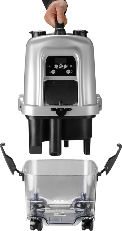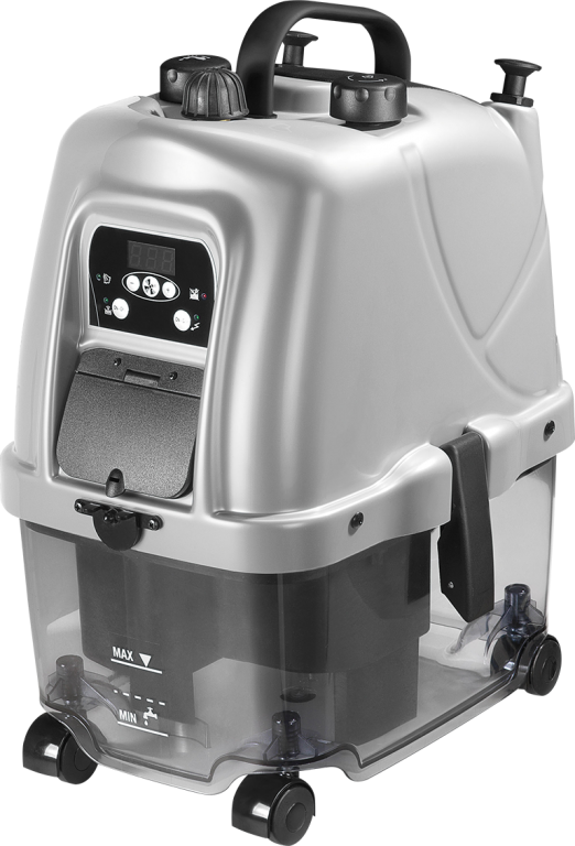 Athena è la prima macchina lavasciuga così compatta con un getto di vapore che può raggiungere 8 bar di pressione. È una macchina speciale, potente ed ecologica, aspira solidi e liquidi e non ha bisogno di filtri o sacchetti da dover cambiare periodicamente perché sfrutta le proprietà naturali dell’acqua e del vapore per garantirti la massima igiene e pulizia nel rispetto dell’ambiente.