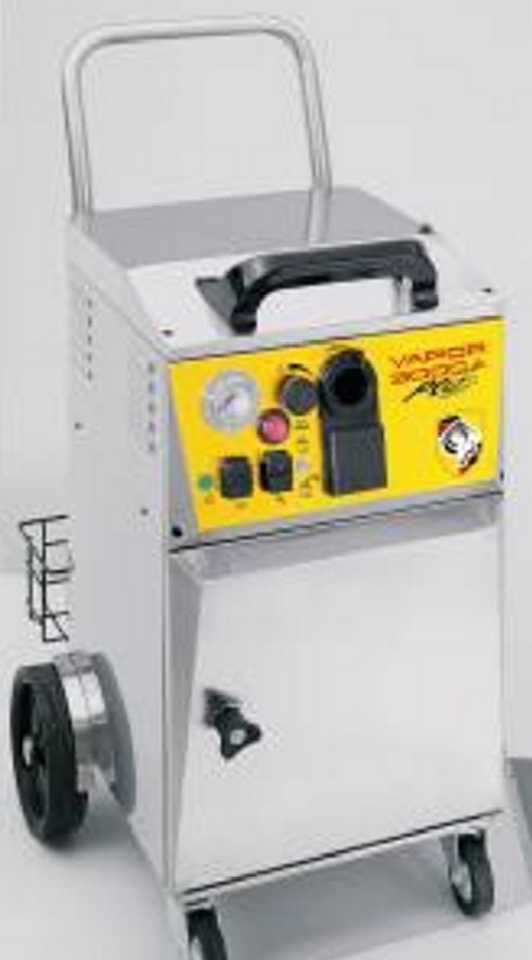 Generatore a vapore con aspirazione liquidi e solidi, siatema di ricarica automatica acqua, detergenti e sistemi di sanificazione: per l’igiene, igiene ambienti e attrezzatura, per professionisti e operatori tecnici in aziende di uso specifico.